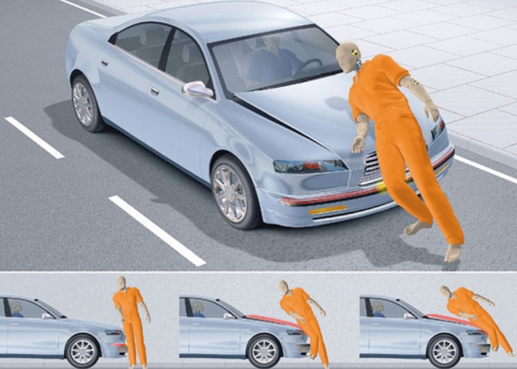 С пешеходами всё обстоит гораздо хуже, у них нет никакой защитной экипировки. Частично делу могут помочь меры по доработке самой опасной передней зоны автомобильного кузова, так называемые активные капоты.