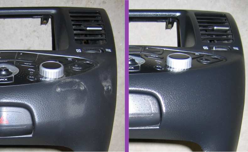 Полноценный ремонт подразумевает собой полную замену старого пластика на новый или же его реставрацию. Пластмасс шлифуется, грунтуется и затем покрывается красящим составом нужного цвета.