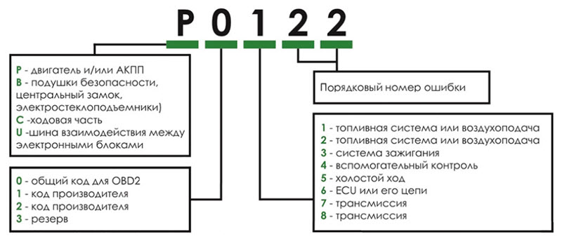 Каждая ошибка кодируется в соответствии с международной системой условных обозначений. При этом коды разбиты по группам. У ошибки P0335 первая буква означает, что данный код относится к двигателю или автоматической коробке передач.