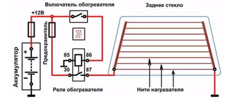 Для быстрого устранения запотевания лобового и заднего стёкол используется нанесение на них токопроводящих металлических нитей. Через образованную ими сетку пропускается электрический ток, нити нагреваются, и конденсат испаряется. Ездить с дефектами этой системы опасно, видимость понижена, а восстановить обогреватель достаточно несложно в большинстве случаев.