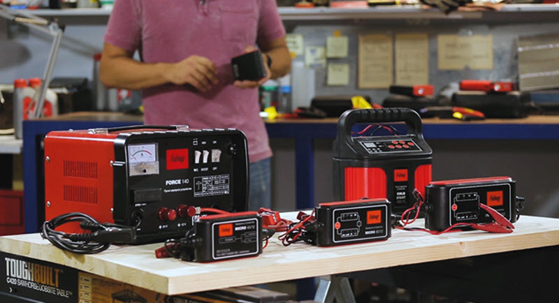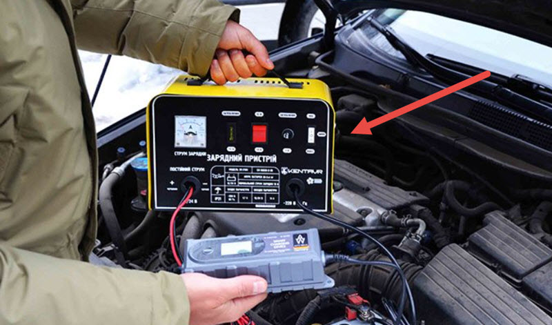 Более серьёзные устройства располагают мощным трансформатором или инвертором, их уже можно считать пуско-зарядными, где выходной ток вполне достаточен не только для медленной зарядки батареи, но и устроит потребности стартера. Обычно это массивная стационарная техника, которой располагают хорошо оборудованные СТО.