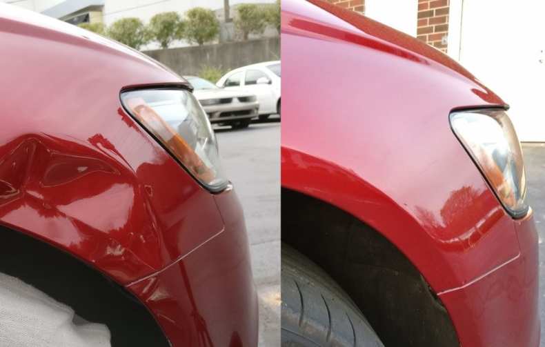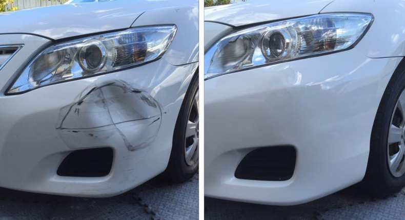 Вытягивается вмятина на поверхности пластикового бампера по-другому, чем выправляется металлическая панель, что характеризуется целым рядом отличительных особенностей.