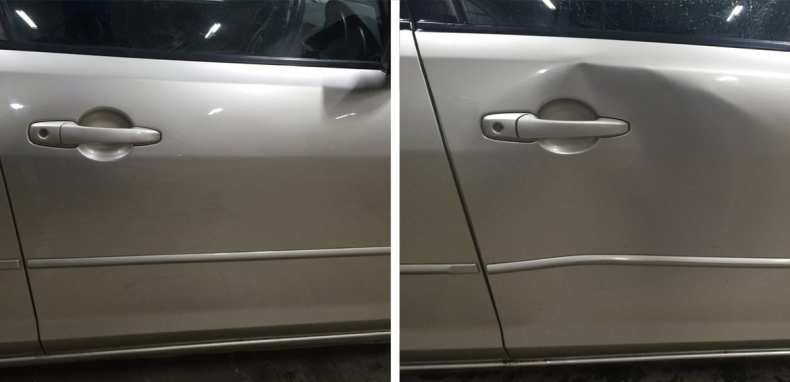 В случае отсутствия знаний, как выполнять ремонт кузова, следует обратиться в мастерскую. Если человек сам выпрямляет вмятину, это способствует усугублению деформации.