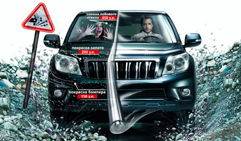 - сбережение от абразивов и ударов мелкого гравия на дорогах.