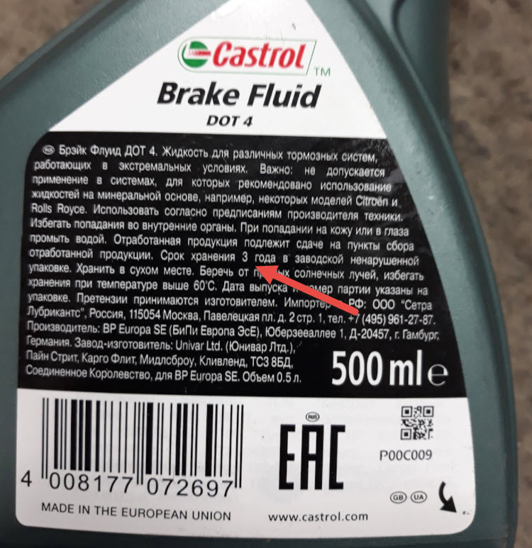 Сколько времени хранится тормозная жидкость в упаковке