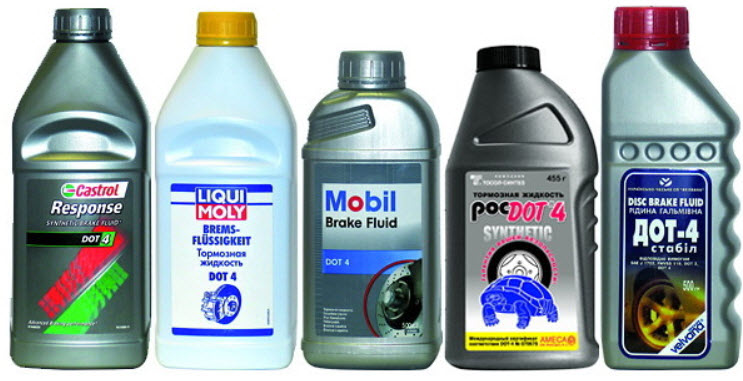 Самой распространённой тормозной жидкостью для автомобилей можно считать изготовленную в рамках стандарта DOT-4. Это гликолевые составы с набором присадок, в частности, снижающими эффект поглощения влаги из воздуха.