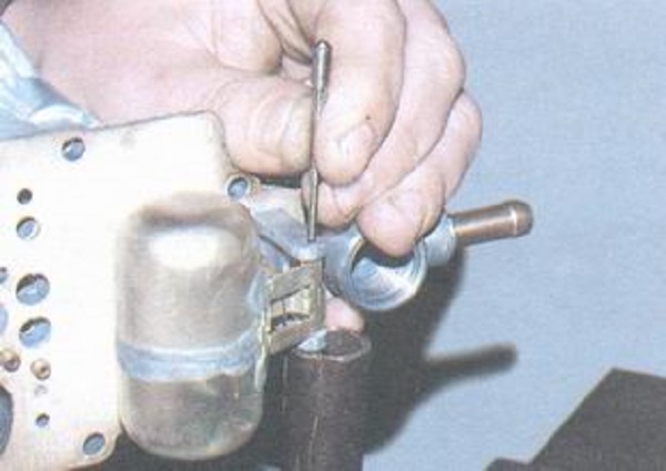 Помимо этого, вам понадобится тонкий бородок либо оправка длиной 40 мм и диаметром около 2-2.3 мм, чтобы выпрессовать ось поплавка из кронштейна карбюраторной крышки.