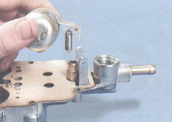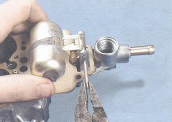 - При несоответствии величины зазора величина корректируется посредством подгибания язычка поплавка.