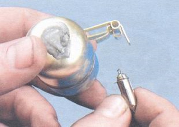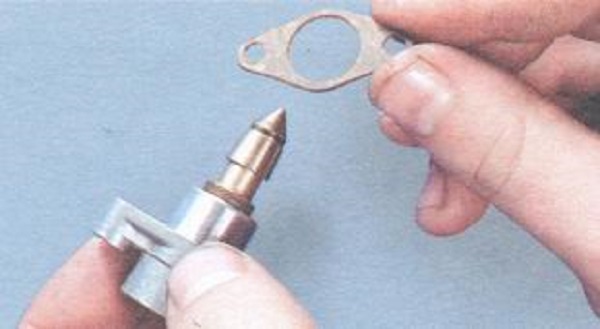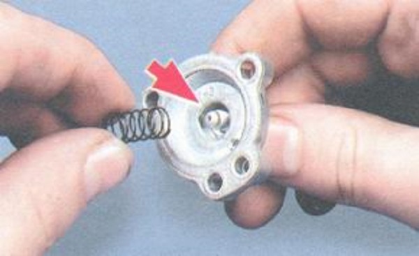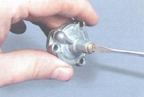 - Выворачиваем седло топливного клапана, а затем вынимаем из крышки уплотнительную шайбу седла.