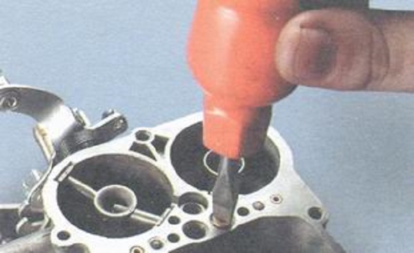 - Выворачиваем основной воздушный жиклер 1-ой камеры.