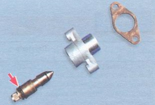 - Снимаем распылитель ускорительного насоса с верхней уплотнительной шайбой и клапаном-винтом.