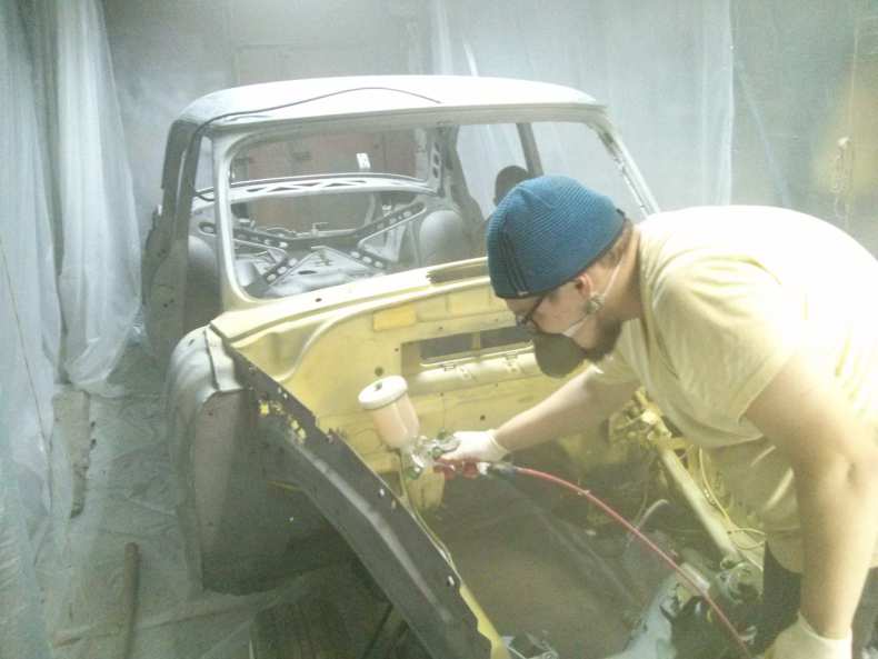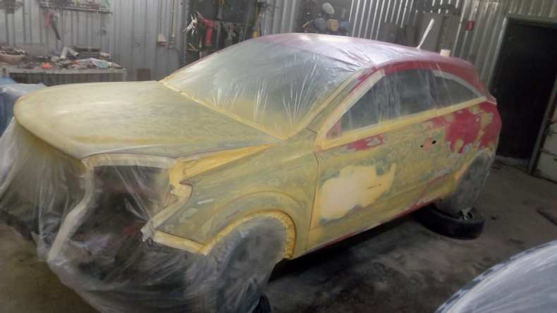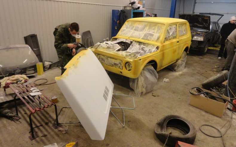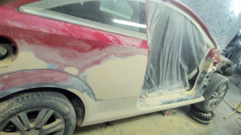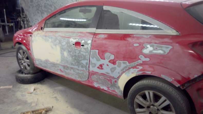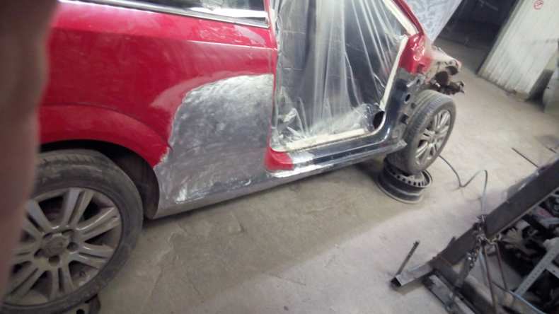 - Кузов автомобиля необходимо тщательно очистить от старых слоев покрытия до металла.