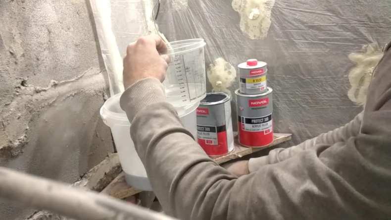 - Смешивается с отвердителем. Как именно, это нужно смотреть в инструкции к этим составам. Иногда бывает, что такой состав можно наносить сразу, а может быть, что нужно подождать некоторое время;