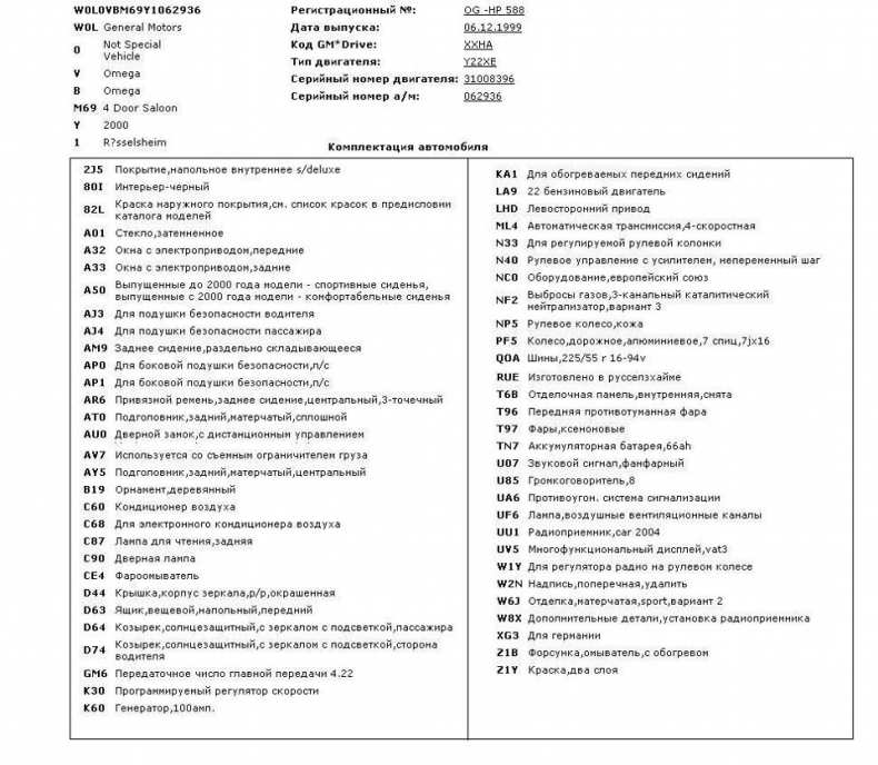 Проверка комплектации автомобиля по vin код