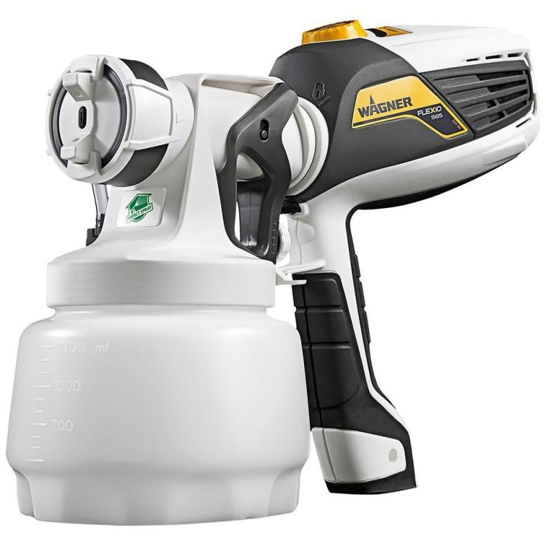 - WAGNER 585 FLEXIO. Устройство является многофункциональным и обладает и обладает турбинным нагнетателем воздуха. Мотор находится в корпусе краскопульта. В комплект входят различные насадки, а также специальный чемодан, предназначенный для хранения и переноса комплектующих. Применяется для бытовых нужд.
