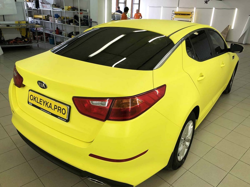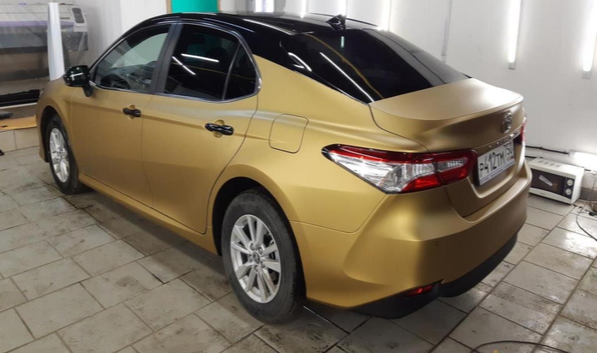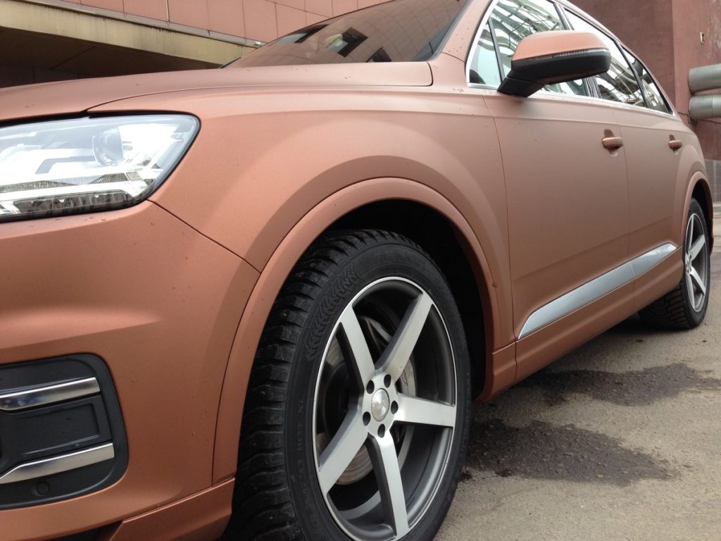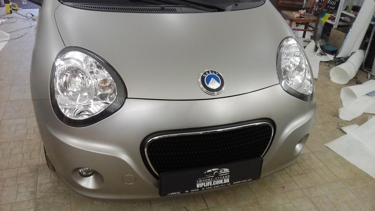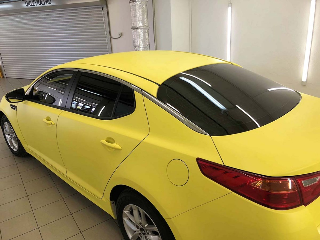 - Обклеить корпус особой пленкой из винила: более дешевый способ. Здесь используется виниловая пленка, которая точно наносится на кузов и плотно фиксируется. В отличие от первых двух способов, где в случае появления царапин возникнет острая необходимость перекрашивать машину целиком, то пленка позволяет проводить замену в прохудившейся части без последствий для всего кузова. А если вам надоест лицезреть матовость, всегда можно избавиться от пленки, и вернуть транспортному средству первоначальный блеск. Недостаток метода заключается в неидеальном результате и необходимости стыковать куски пленки между собой.