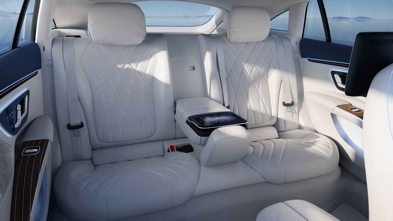 На базовой версии EQX+, отсутствует система MBUX Hyperscreen. По аналогии с S-классом вмонтирован отдельный приборный монитор на 12,5 дюймов, а по центру установлен мультимедийный планшет.