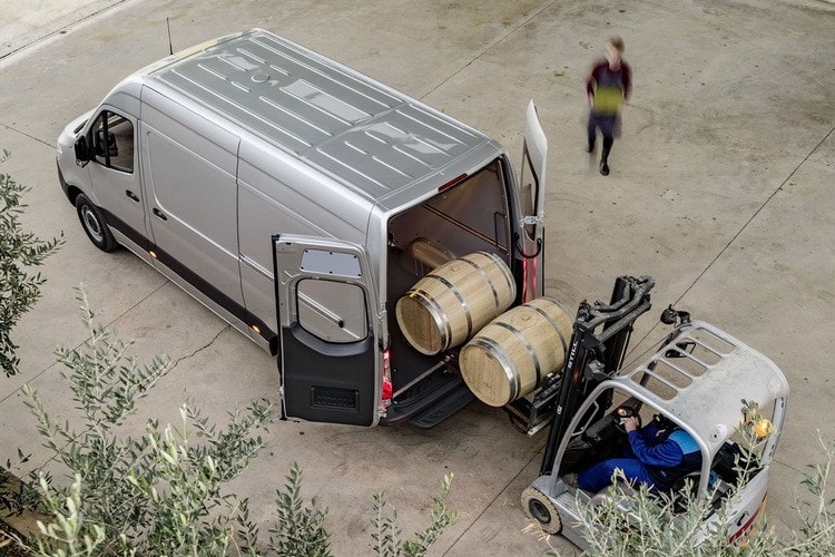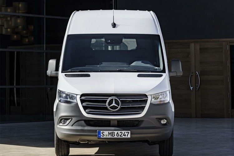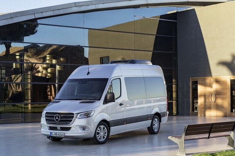 Mercedes Sprinter 2018 модельного года не слишком сильно выделяется из общей массы и сливается с городским пейзажем.