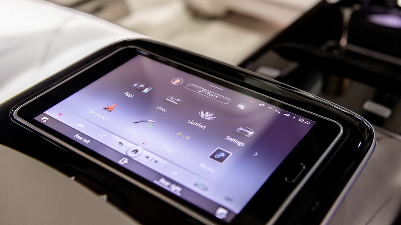 Атмосферу сзади улучшает раздельный климат-контроль, подушки-подголовники, ионизация воздуха. Развлекать пассажиров в поездке будет мультимедиа с дистанционным управлением, и премиальная музыка Burmester с 24 динамиками.