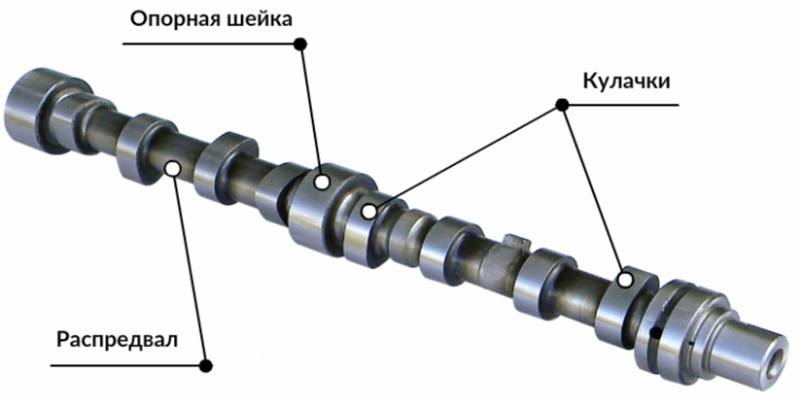 Данный вал, а их может быть один или несколько, и называется распределительным или распредвалом. Смысл названия состоит в распределении потоков смеси и выхлопных газов по цилиндрам открытием и закрытием клапанов.