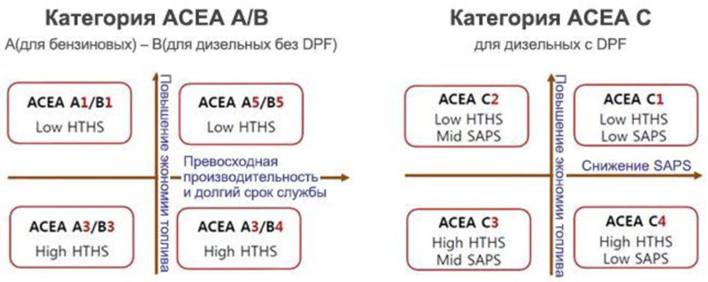 Не прибегая к лабораторным анализам, зольность можно узнать в кодах и допусках качества масла. Как указывалось, выше, это регулирует евростандарт ACEA.
