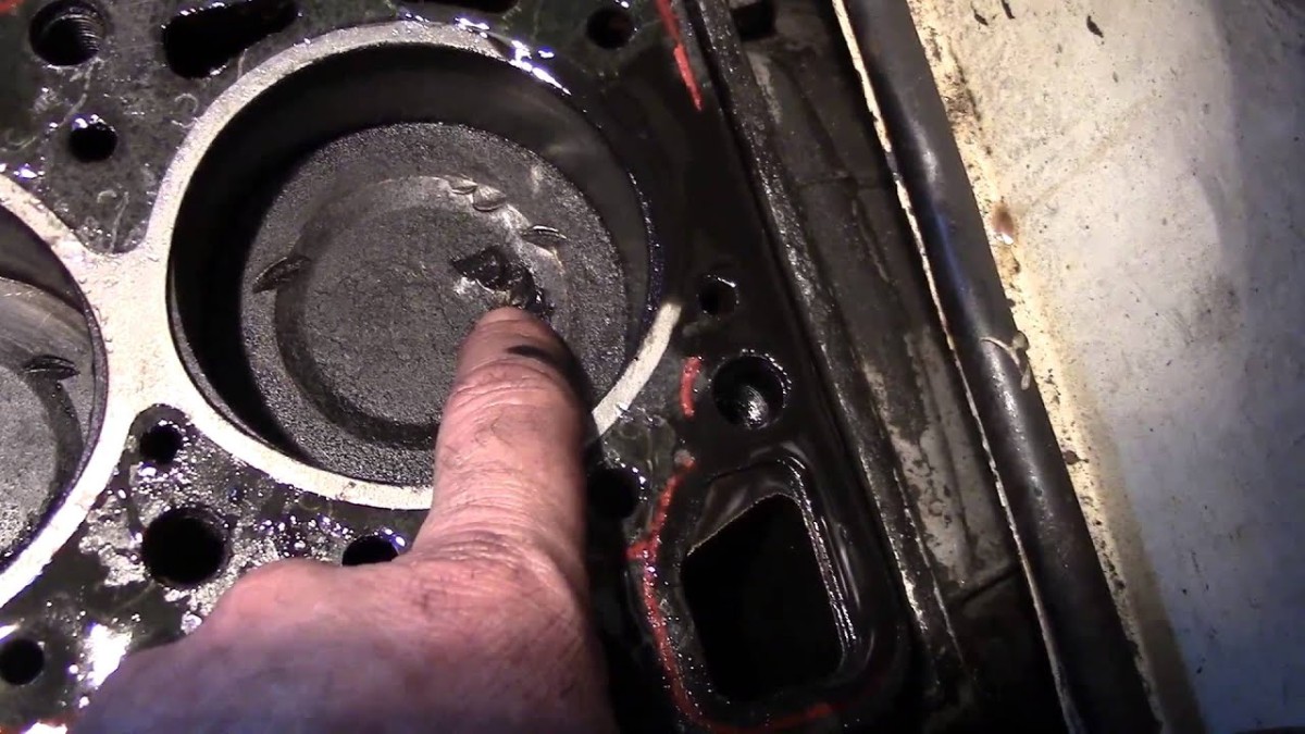 - Выполняется диагностика цилиндра. Поршень следует опустить в НМТ и осмотреть стенки на присутствие трещин;