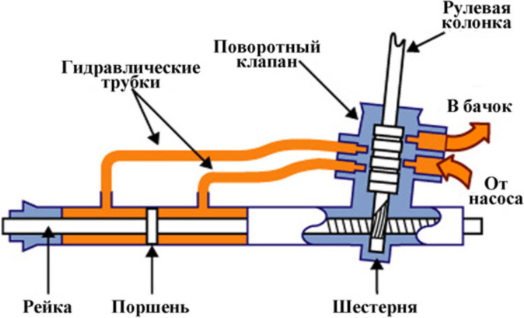 Конструкция может быть гораздо сложнее, с применением червячных и планетарных передач, что даёт нужную прозрачность руления, но в целом принцип именно таков. За исключением случаев, когда усилитель устанавливается в рулевой колонке и не меняет конструкцию корпуса рейки.