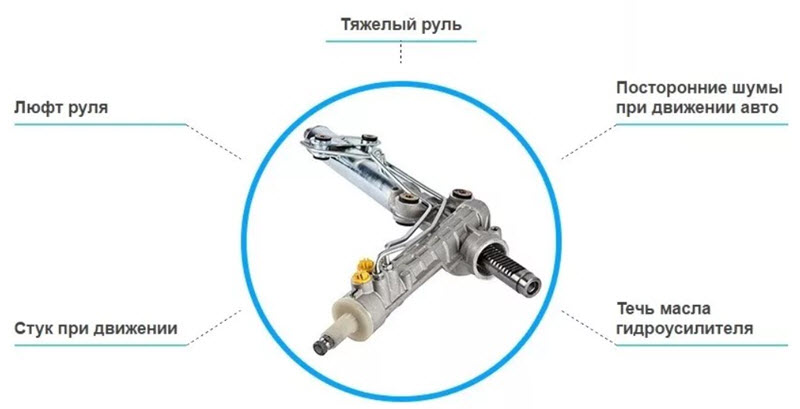 В рейках с гидроусилителем сигналом к безусловной переборке будет наличие подтеканий гидравлической жидкости. Обычно она скапливается внутри защитных чехлов шарниров рулевых тяг.