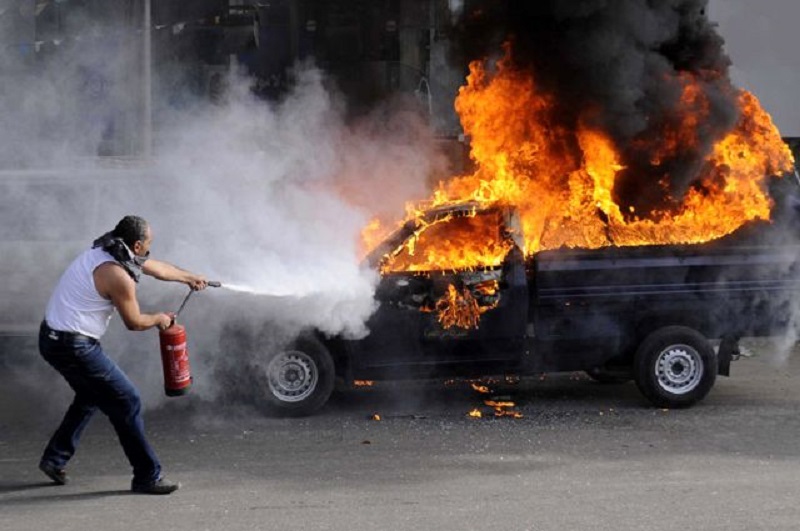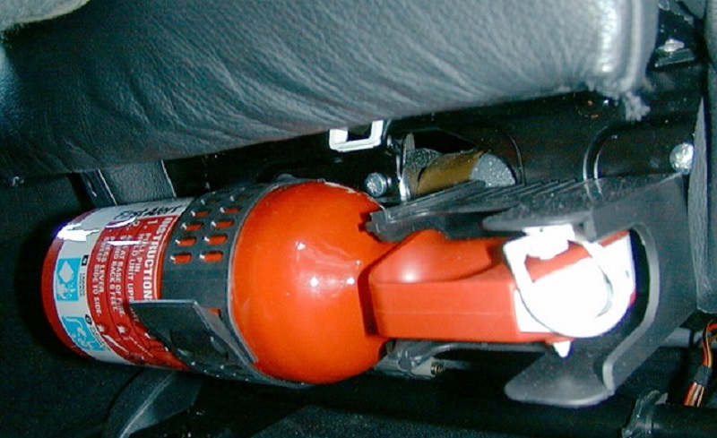 Для устранения пожара воспользуйтесь огнетушителем, который есть в автомобиле: