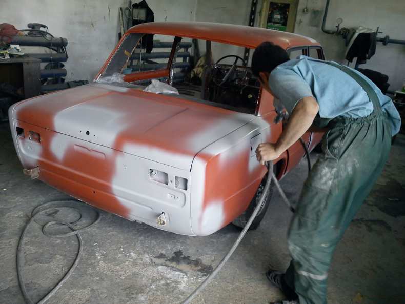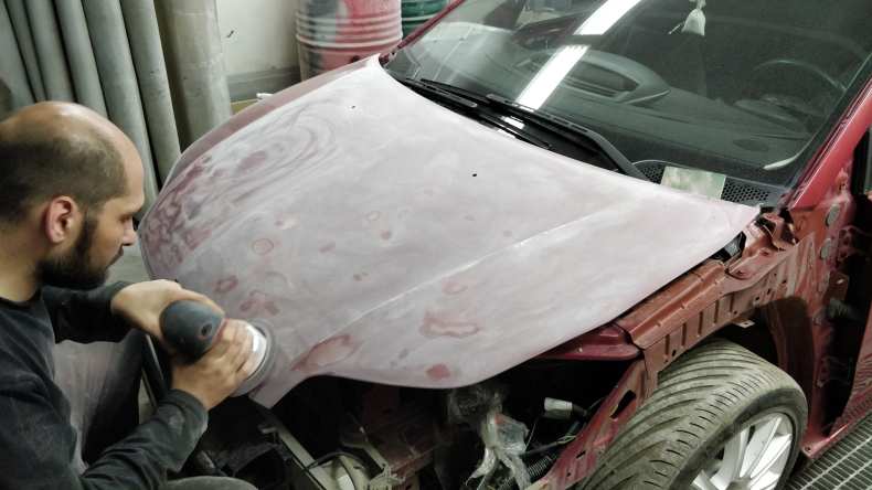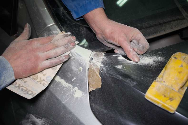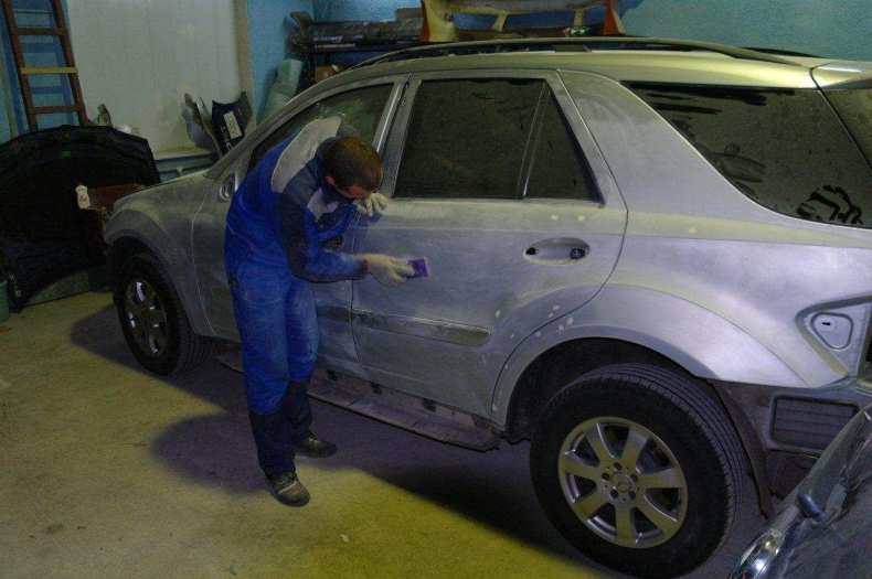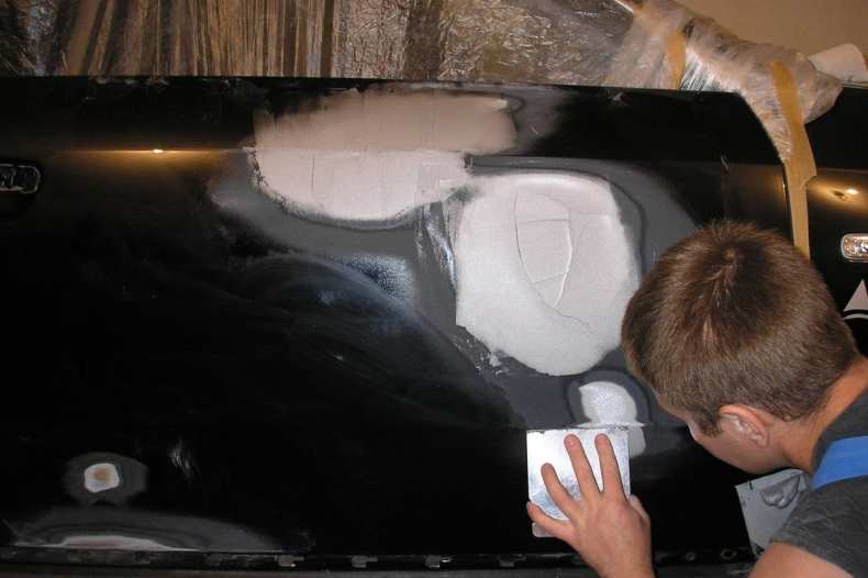 После шпаклёвки поверхность следует зачистить, выровнять и применить грунтовку как заключительный этап подготовки автомобиля к покраске.