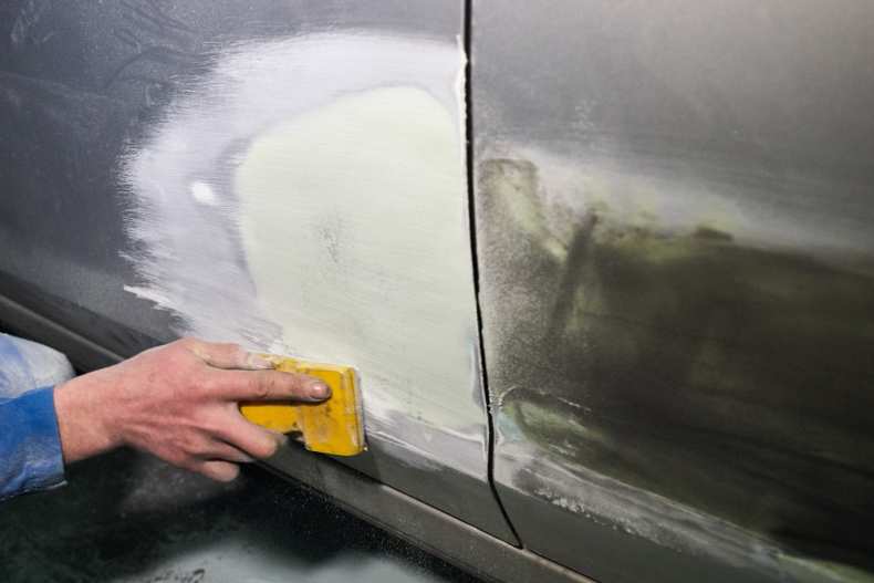При помощи шпатлёвки можно легко устранить такие дефекты, как царапины и сколы. Она служит хорошим подготовительным материалом для дальнейшей покраски кузова. Шпатлёвка имеет пастообразный состав, включающий лак, пигменты и наполнитель в виде обычного мела.