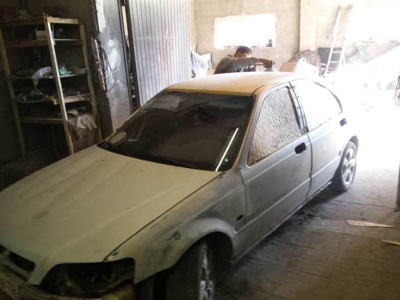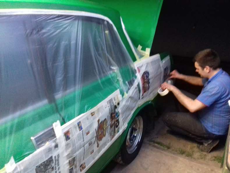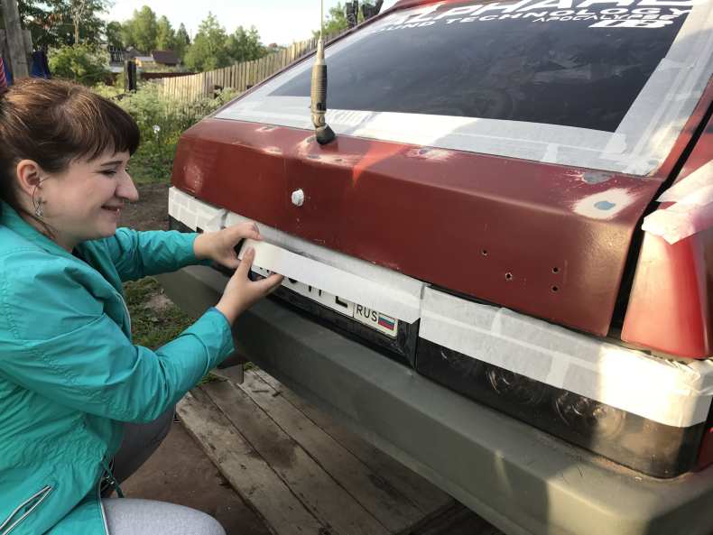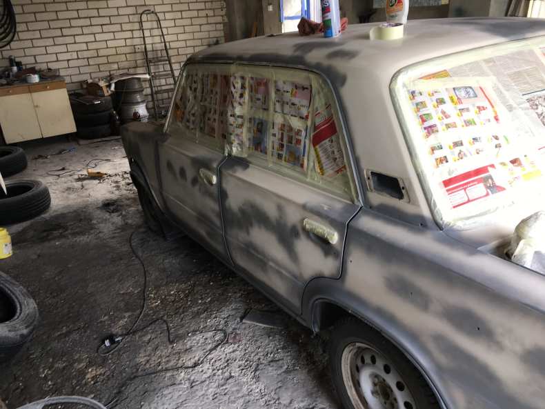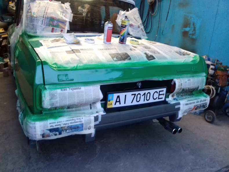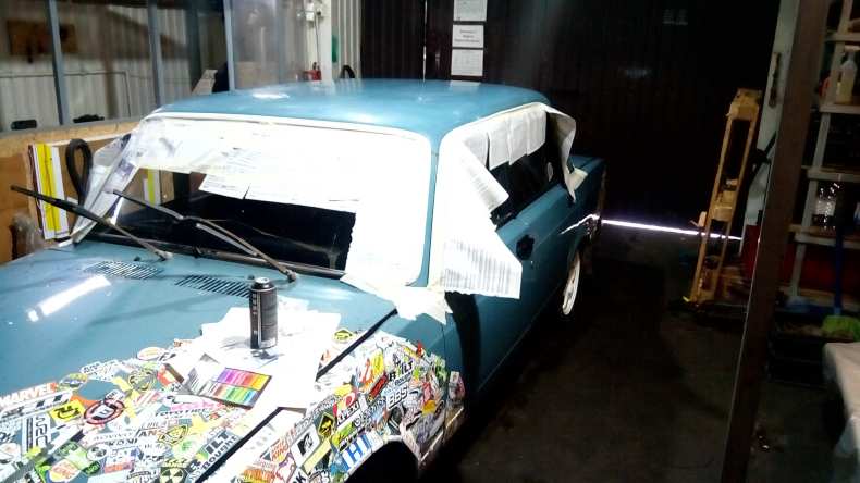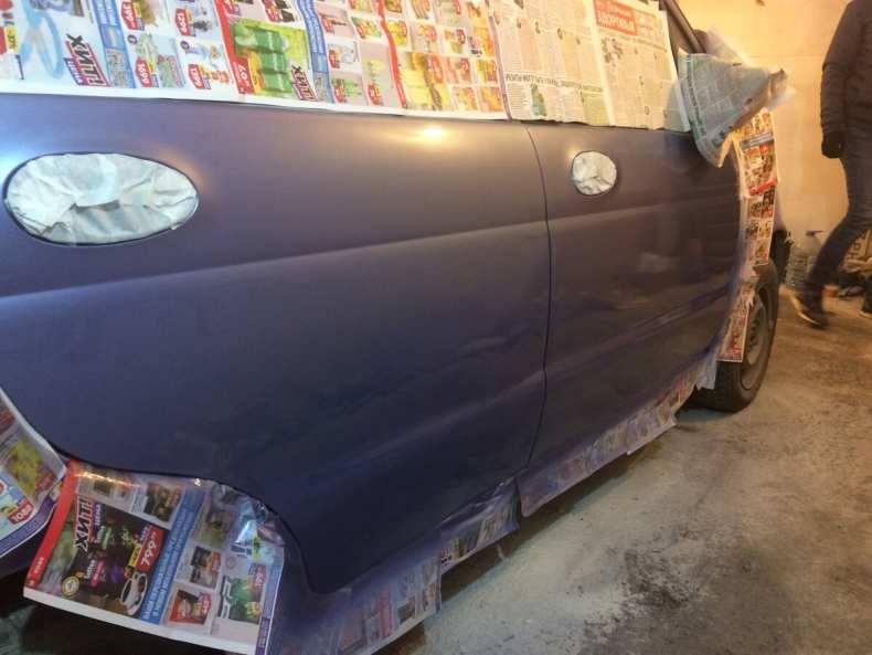 - Кузов или деталь автомобиля тщательно промывают под высоким давлением и высушивают. Части автомобиля, которые не планируется красить, обматываются малярным скотчем и защитной пленкой.