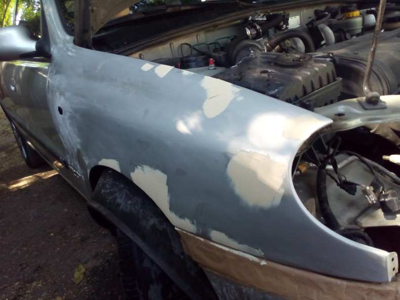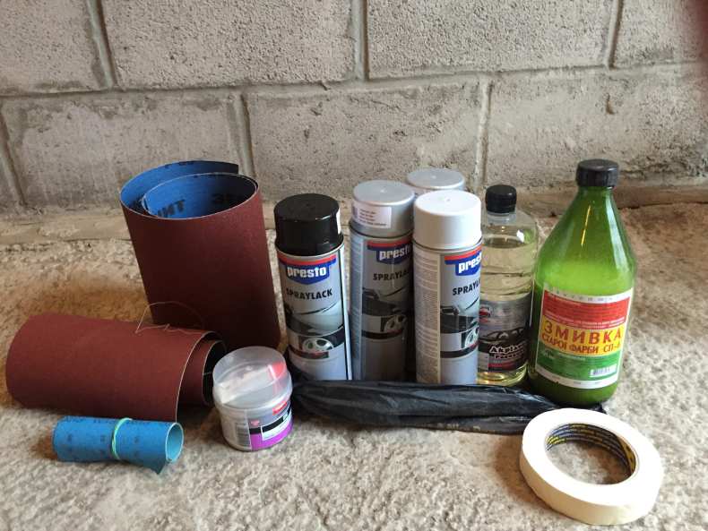 - Элементы обрабатываются обезжиривателем (бензин и растворитель использовать нежелательно), царапины на кузове либо обрабатываются особыми растворами для заполнения, либо зачищаются и покрываются шпаклевкой и грунтом.