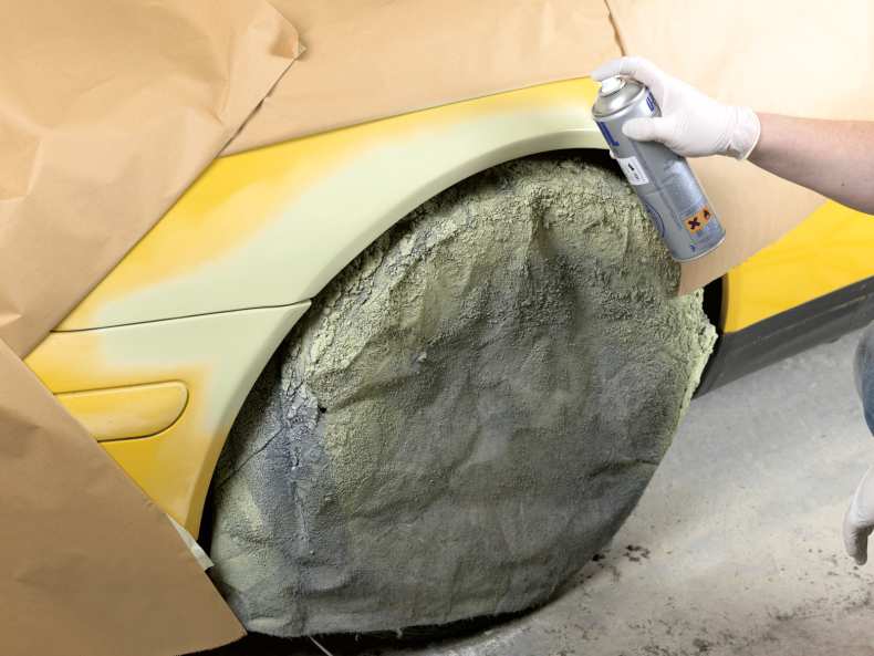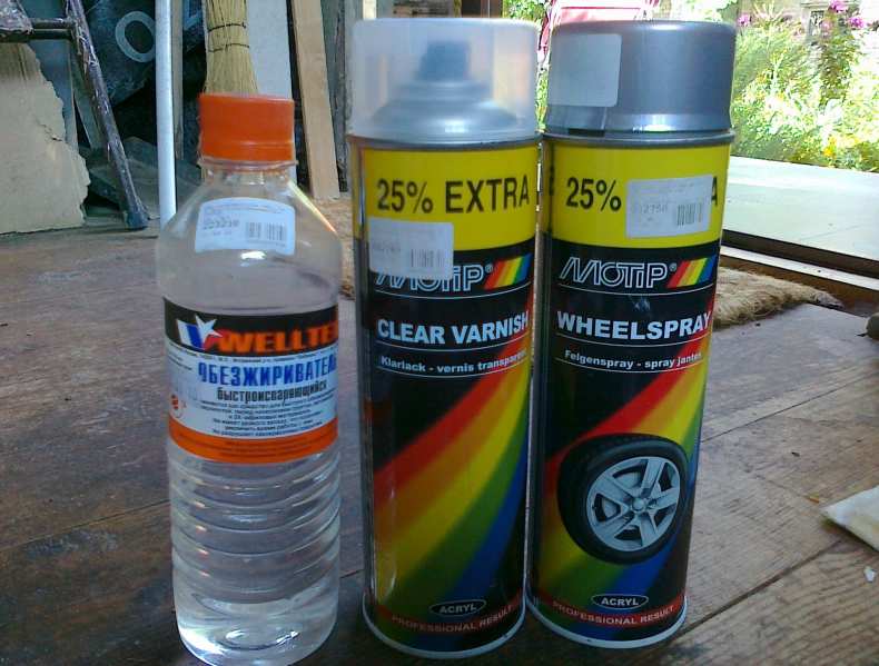 Колеса автомобиля необходимо снять или защитить бумагой (пленкой), так как резина не предназначена для покраски и впоследствии стереть следы аэрозольного состава не представляется возможным.