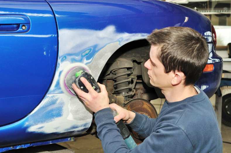 - Шпатлевание – необходимый шаг в том случае, если у вас есть дефекты на поверхности. Это могут быть вмятины, царапины и многие другие повреждения. Заранее загрунтуйте и высушите поверхность перед шпатлёвкой. После этого необходимо зашлифовать поверхность наждачной бумагой, промыть водой и высушить.