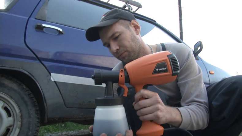 Чтобы краска ложилась ровно и без перехода по плотности в слоях, лучше использовать даже самый дешевый пульверизатор.