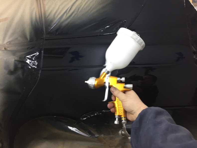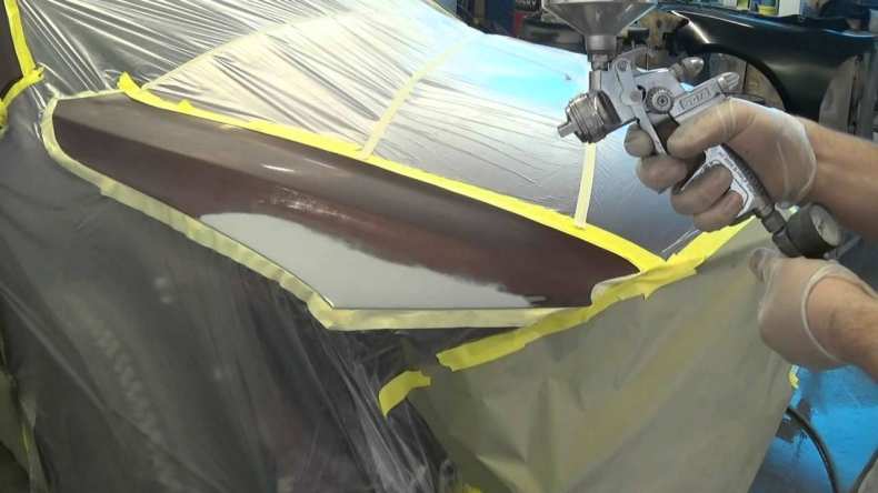 - После того как основное место ремонта будет полностью окрашено, состав распыляется за пределами поверхности.