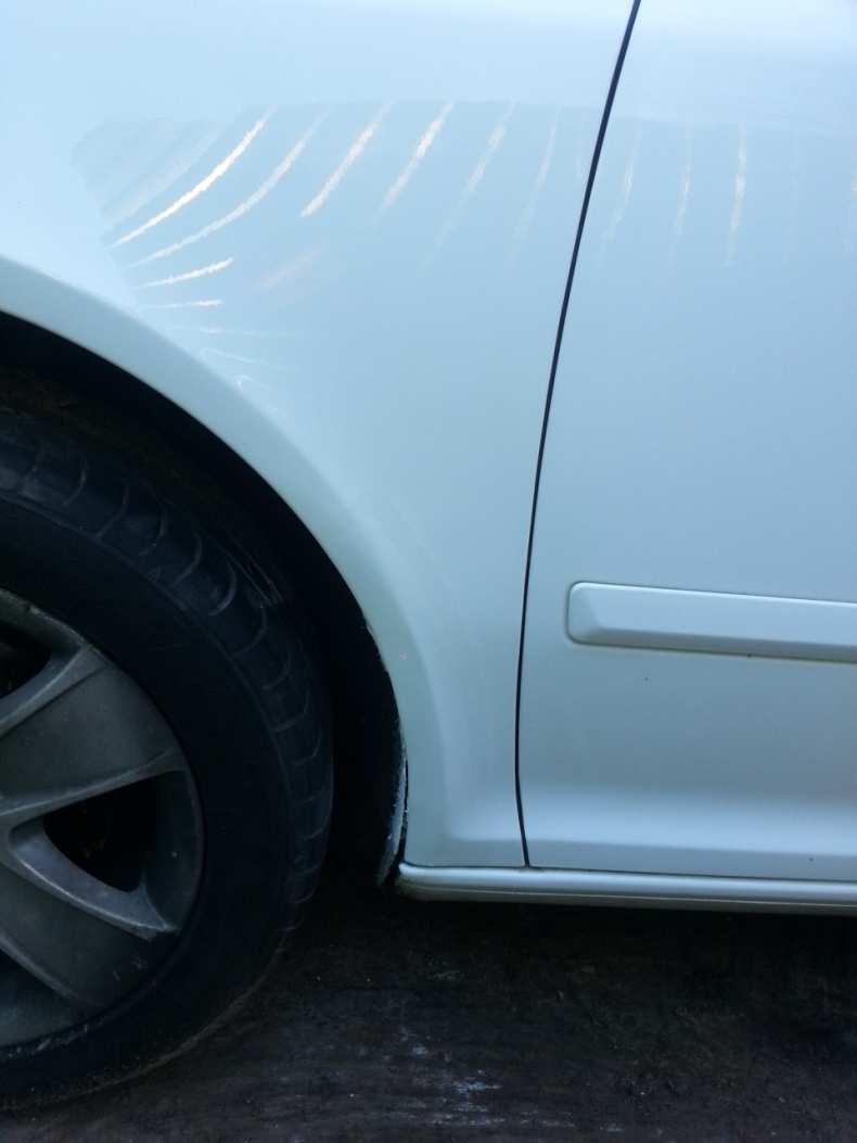 Такой переходный вариант окрашивания позволит восстановить покрытие, если проблема находится возле излома двери или крыльев.