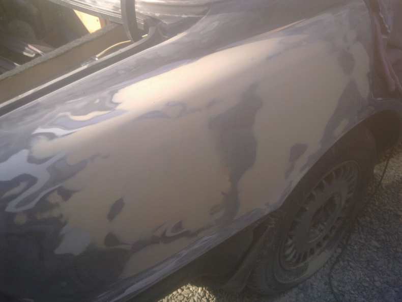 - Ремонт листового металла — если он отремонтирован, вполне возможно, что между слоями прошлого покрытия, есть следы отслаивающейся краски или неровности. Поэтому необходимо использовать наждачную бумагу с крупной зернистостью P80, чтобы зачистить участок и выровнять его для дальнейшей процедуры.