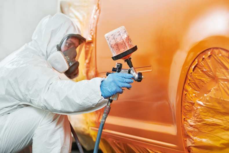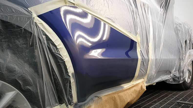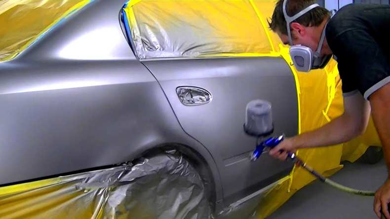 - Акриловые эмали — эти краски лучше эмульгируются с помощью растворителя. Блеск становится менее заметным, что поможет скрыть факт восстановления участка. Этот вариант встречается в средних мастерских, не слишком дорого, но качественно.