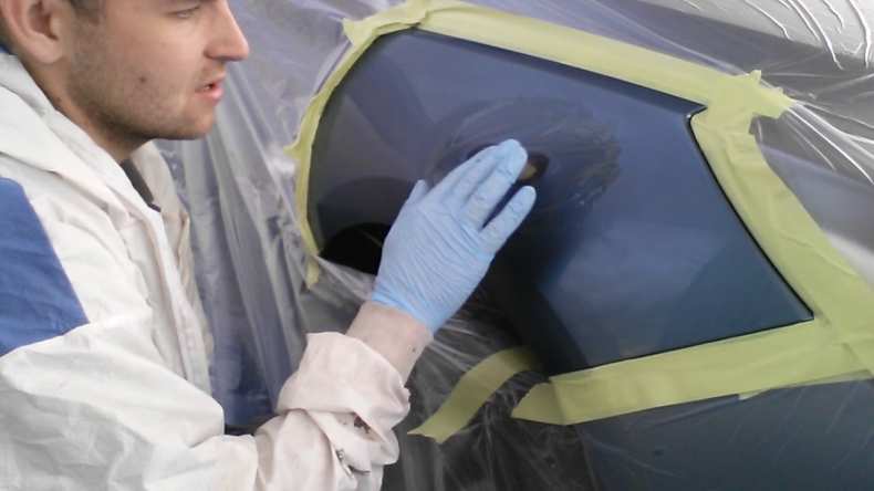 После очистки поверхности можно приступить к шлифовке поврежденных участков, для чего все окрашиваемые детали необходимо тщательно осмотреть, выявив места, требующие восстановления.