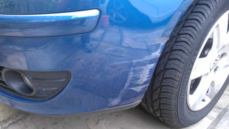 - Царапины и удары — в этих случаях необходимо зачищать до тех пор, пока поверхность не станет идеальной. Более того, очень сложно сделать так, чтобы восстановленный участок не сильно отличался по слою от остальной здоровой части. Для этого процесса лучше выбрать бумагу с зернистостью P150 – P180.