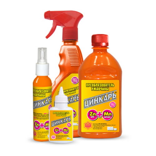 Обработка начавшей ржаветь металлической поверхности Цинкарем позволяет разрушить оксиды железа, преобразовать их в фосфаты. Присутствующие в составе Цинкаря ортофосфорная кислота, марганцевые и цинковые соли в процессе химических реакций, происходящей на коррозийной поверхности, способствуют образованию на ней активного защитного слоя.