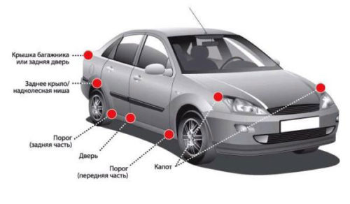 - металлические кромки фланцев на дверках, капоте, крышке багажника