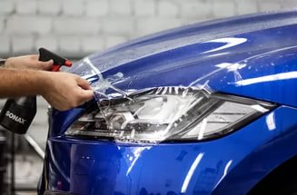 Далее с полимерной пленки снимается защитный слой и она просто придавливается липкой стороной к сухой и чистой поверхности кузовных деталей.