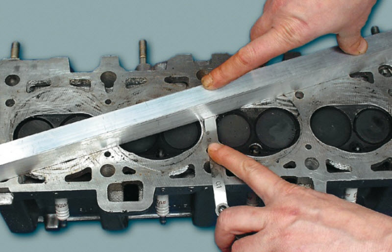Необходимо тщательно проконтролировать плоскости измерительными приборами и при малейших отклонениях отправить ГБЦ на шлифовку.