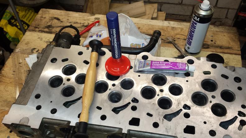 - Фаску головки цилиндра обильно смазывают притирочной пастой по всей площади тарелки.