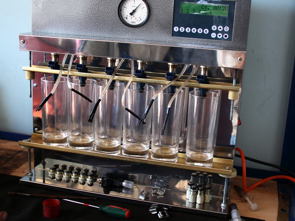 - Через несколько минут пробка раскручивается и «упражнение» вместе со всем накопившимся осадком переливается в наполненную емкость (срезается полупустая емкость).