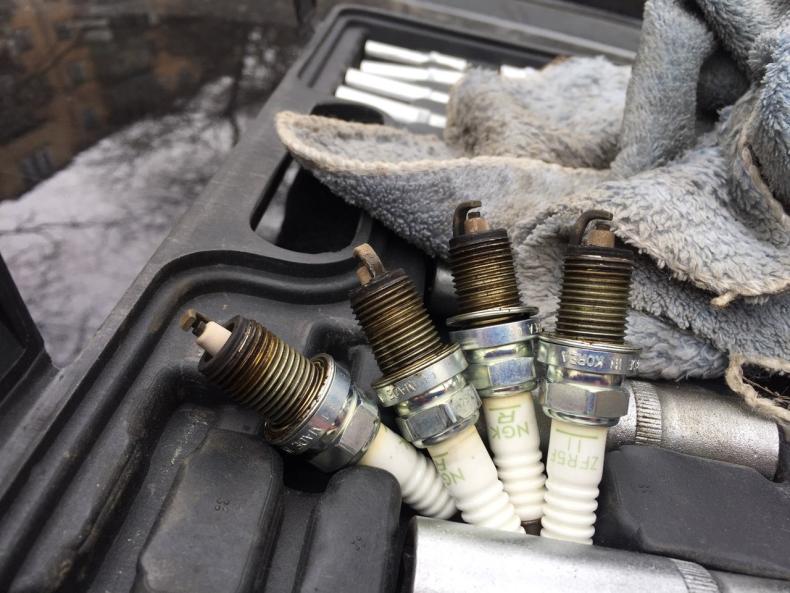 - Проблемы со свечами зажигания. Часто случается так, что водители длительное время используют один и те же свечи зажигания, даже и не думая их поменять до того момента, пока они сами не выйдут из строя. Результатом становится внезапное и неожиданное сгорание электродов. Из-за этого нарушения не может и появиться искра, необходимая для воспламенения смеси, и, как следствие, начинают проходить пропуски зажигания. А чем чаще подобное происходит, тем более сильный слой нагара появляется на самих свечах.