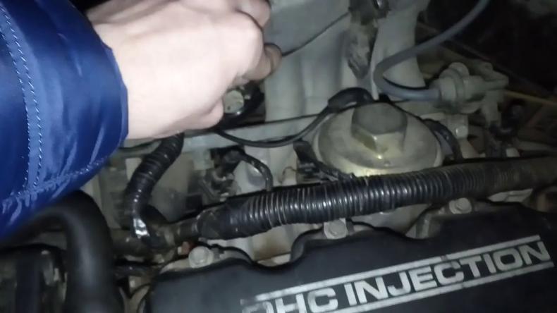 - Снимите со свечей контакт с высоковольтными проводами. В это время ДВС должен быть запущен.